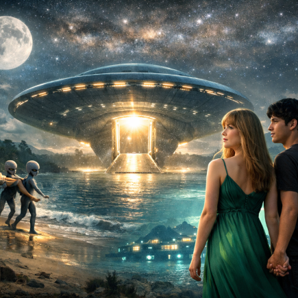 NO OTHER GODS, CHAPTER TWO: PART II: INSIDE THE CRAFT By Janet Kira Lessin Johnston Atoll, 1996 [EPIGRAPH — to be selected] IMAGE PROMPT 1: Two human figures — a young woman and a young man — standing just inside the entrance of a small oval spacecraft. The interior is vast and luminous, far larger …