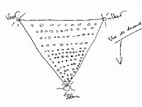 On September 7, 1997 at 01 hours 43, a witness observes from his balcony a triangular form with two blue lights and a green one which moves slowly on a rectilinear trajectory. The observation lasts 12 seconds. No noise was perceived but the witness felt vibrations in the body, and when he wanted to take a photograph, its apparatus was blocked. The dimension of the object was estimated by the witness at approximately 700 meters. The investigation did not make it possible to give an explanation to this phenomenon. View full report
