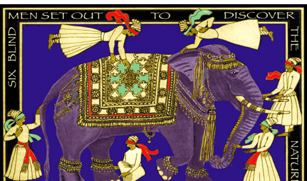 They began to argue about the elephant and every one of them insisted that he was right. It looked like they were getting agitated. A wise man was passing by and he saw this. He stopped and asked them, “What is the matter?” They said, “We cannot agree to what the elephant is like.” Each one of them told what he thought the elephant was like. The wise man calmly explained to them, “All of you are right. The reason every one of you is telling it differently because each one of you touched the different part of the elephant. So, actually the elephant has all those features what you all said.”