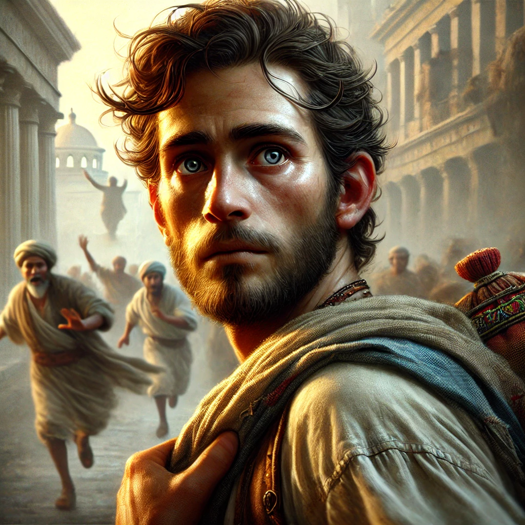 A foreign artisan looks back one last time at the city he helped build — his home, his work, now stolen. In his eyes, grief, disbelief, and the burden of forced exile.