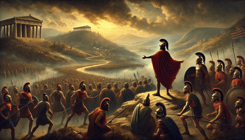 #Athens #Thrasybulus #ThirtyTyrants #GreekHistory #PeloponnesianWar #Democracy #AncientGreece #HistoricalArt #FacesOfFreedom #VisualHistory #FantasyRealism #HistoryThroughArt #AthenianDemocracy #ResistTyranny #JusticeRestored