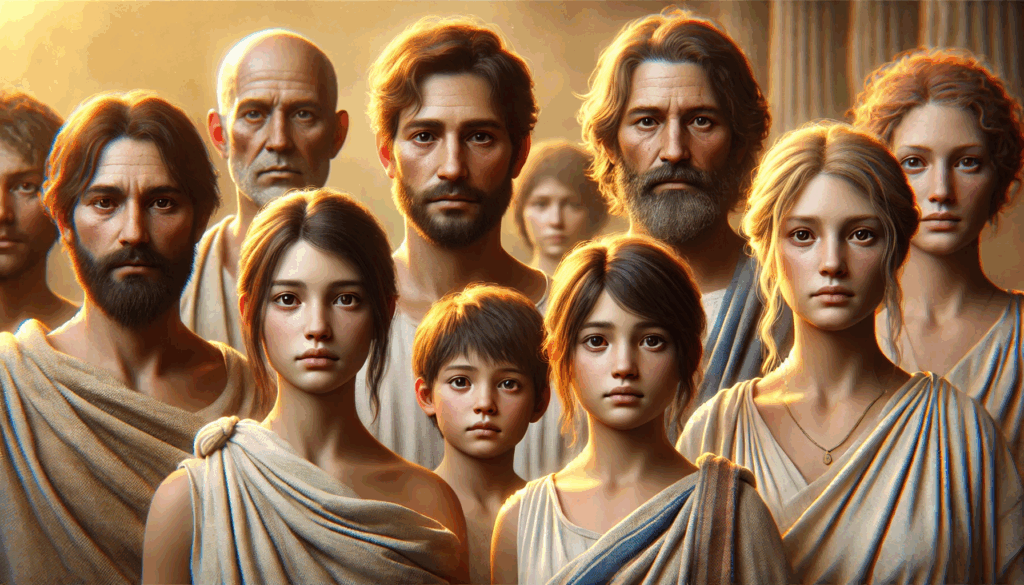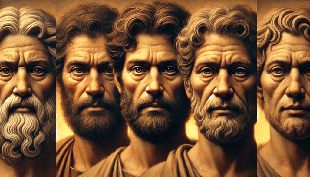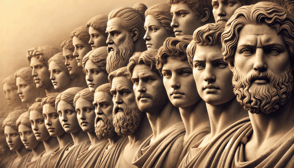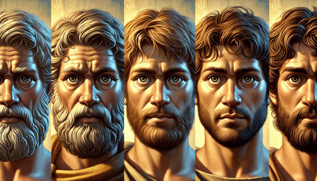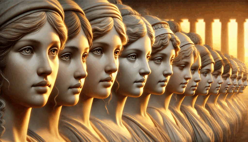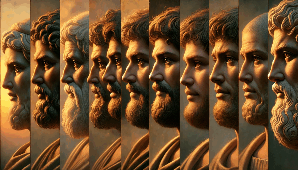 Faces of ancient resilience. This portrait captures the spirit of Athenian men during the darkest and brightest days of their city — the fall of tyranny and the rebirth of democracy. Each gaze speaks across centuries: strength, sorrow, and an unwavering connection to justice.