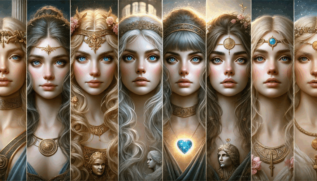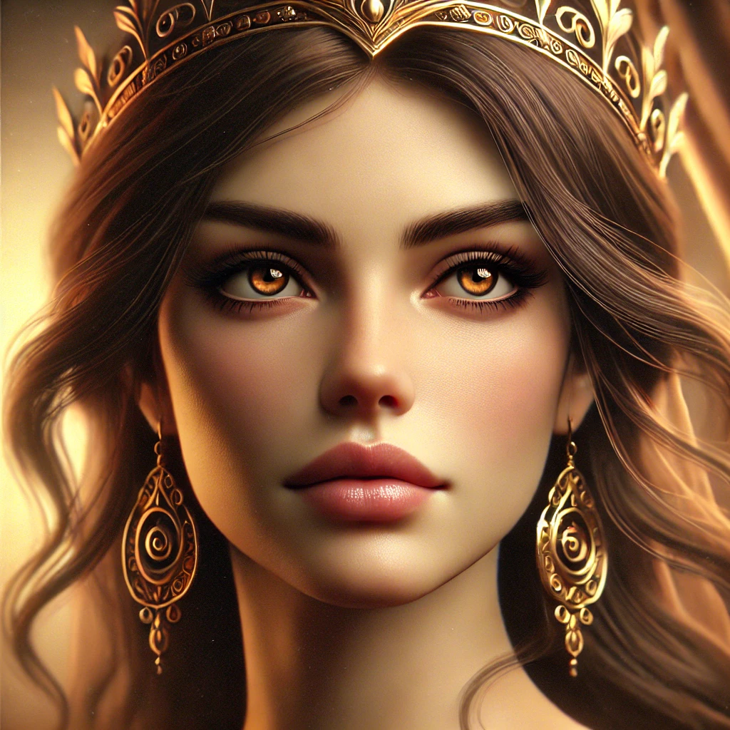 MARDUK & OLYMPIAS: THE DIVINE UNION OF EAST AND WEST In this radiant scene, Marduk, the celestial king of Babylon, walks beside Olympias, an embodiment of Greco-Macedonian elegance and divine femininity. Draped in golden robes and adorned with royal jewels, she glows with strength and allure. Marduk’s protective gaze reflects reverence, not just for her beauty, but for the cosmic balance she represents. Together, they symbolize a powerful convergence of empires, pantheons, and destinies—walking as equals between the pillars of eternity.