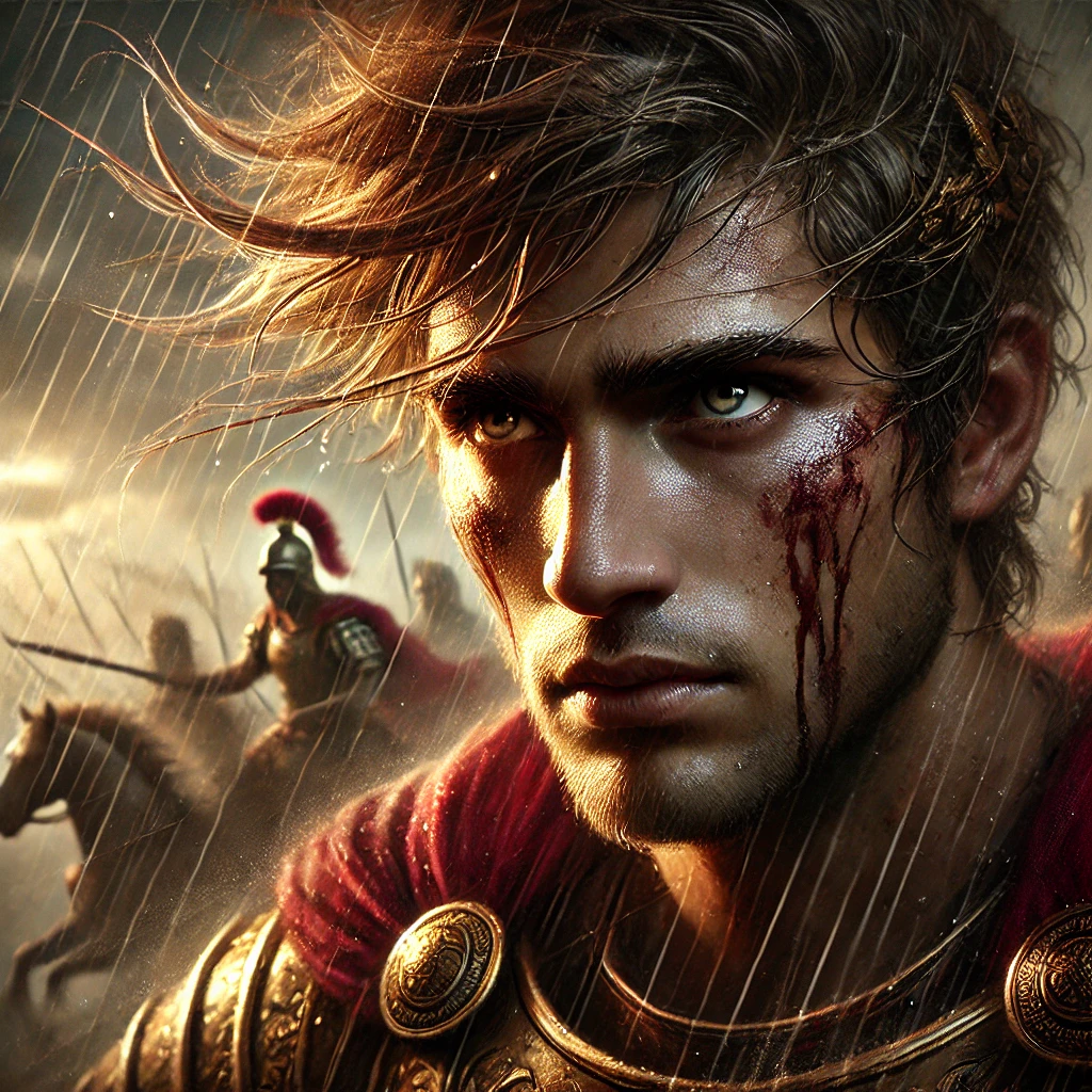 THE FACE OF VICTORY This was not the face of a boy. This was the face of fate. Wind and battle clung to him like prophecy. His armor gleamed beneath blood and water, and his gaze cut sharper than any sword. Alexander needed no crown—only this moment, where the world first saw what he was becoming.
