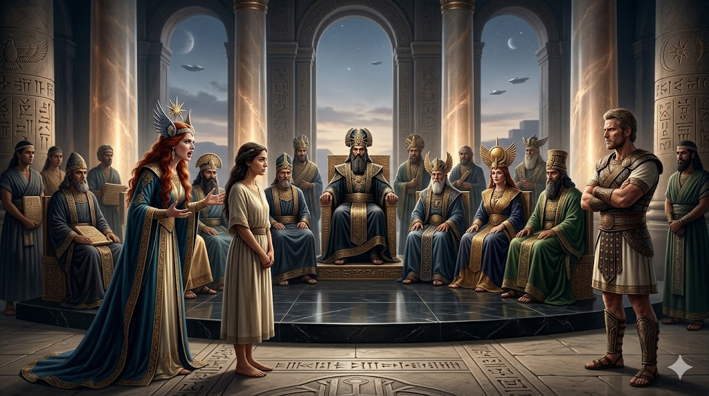 In this account, Princess Ninmah — daughter of King Anu, half-sister to Enki and Enlil, and one of the great royal women of Nibiru — stood at the center of a dynastic crisis that would shape succession, inheritance, and power across worlds.