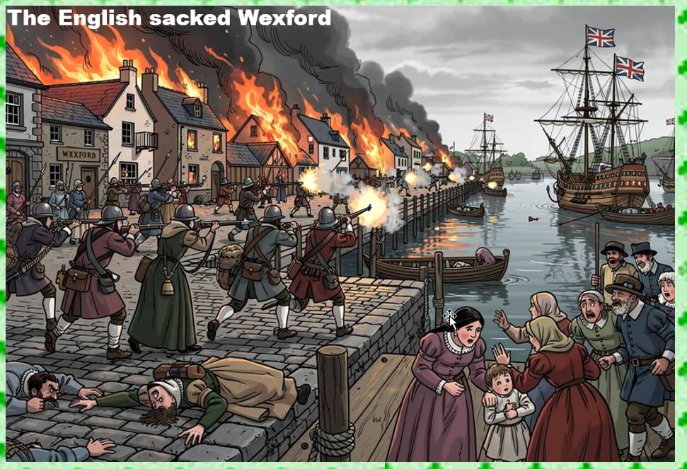 Wexford (October 1649): another sack; hundreds of civilians drowned attempting escape as gunfire rained across the harbor.