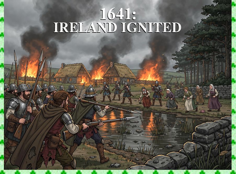Ireland in 1641 trembled like a harp string stretched too tight—land seizures, sectarian humiliation, and centuries of English domination pressed the Gaelic and Old English Catholic population into desperation. When the Catholic gentry rose in October 1641, their rebellion quickly swept Ulster, Meath, Connacht, and beyond.