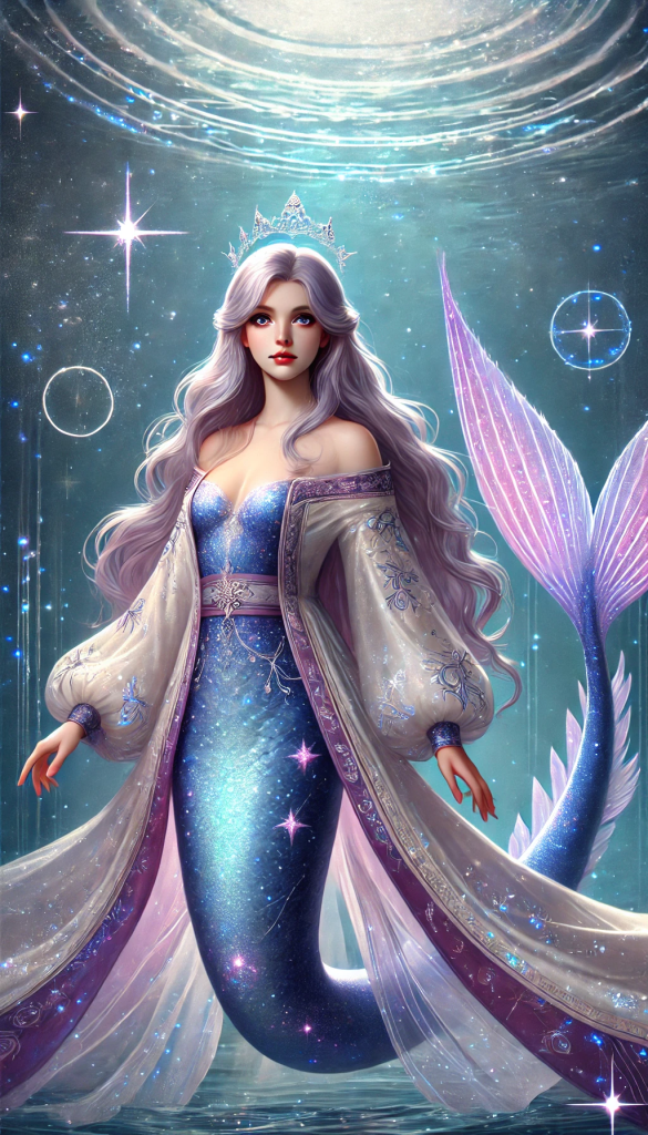 Damkina is not only royalty β she is a cosmic bridge. Born in the heart of a celestial convergence, she embodies the union between starlight and ocean, between the divine above and the living deep below. She is the matriarch of harmonic balance, the keeper of planetary resonance, and sovereign of what is known as the Celestial Deep β a multidimensional ocean that exists beneath the ocean floor, beneath time itself.