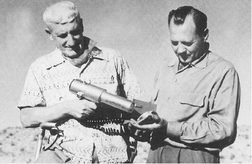 The next important point was in 1949. After the war, when there were massive layoffs, Fry had moved to Oregon to find a way to make a living, and because of Fry’s work with Edmund Sawyer at Crescent and other related rocketry work, he got a job with Aerojet setting up instrumentation to test rockets at the test range in White Sands, New Mexico.[14] It was that year that he had his reported “incident” with Alan which altered the trajectory of his life.