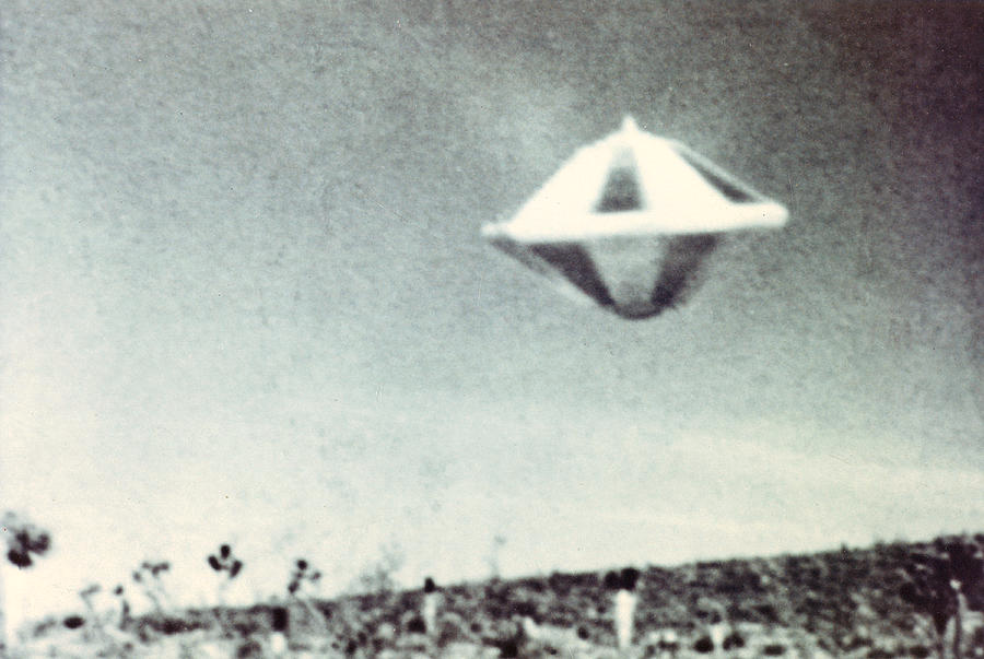 From the White Sands Proving Ground in New Mexico where he worked, Fry had planned to join the July 4, 1949 evening festivities in nearby Las Cruces but missed the last bus. Finding the Bachelor Officers Quarters (BOQ) where he stayed too hot, he decided to explore a path in the desert he had never been down. There, Fry claimed a 30-foot (10 m) diameter, 16 foot (5 m) high “oblate spheroid” landed in front of him, and he talked remotely with the pilot who operated the craft from a “mother ship” 900 miles (1400 km) above Earth. Fry claimed he was invited aboard and flown over New York City and back in 30 minutes.[1] During the flight and subsequent meetings, Fry asserted that he talked with the pilot named Alan, (pronounced “a-lawn”[2]) who gave Fry information on physics, the prehistory of Earth including Atlantis and Lemuria and the foundations of civilization.