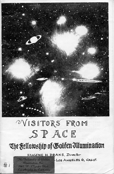 In his first booklet, Visitors from Space, Eugene Drake present this summary of his contact experiences: “For a long time space craft have had this planet under observation. We have been in contact with them since 1930. At that time we were in Santa Monica, and contact was made in a large field where the Santa Monica City College is now located. Only during the past few years have they chosen to reveal their presence.” (p. 1) According to Drake the contacts were physical but the space people live at the etheric level of our multiverse and materialize themselves during the contact events.