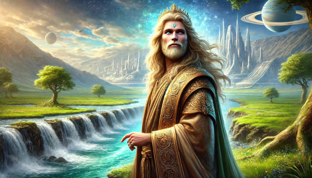 As a master of engineering and life sciences, Ea established the first settlements on Earth, including Eridu, often called the “First City.” He harnessed Earth’s waters and resources, demonstrating his ability to balance ecological harmony with technological advancement. Ea’s role as a protector became evident when he advocated for the rights of Earth’s native lifeforms and, later, for humanity. His title evolved into Enki (“Lord of the Earth”) as he became more deeply integrated with Earth’s destiny.