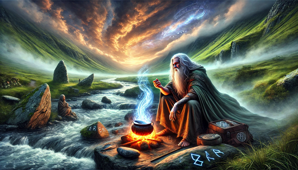 Fin’s life was one of struggle, triumph, and mystery. He battled giants, fire-breathing demons, and sorcerers, not with brute force alone, but with the cunning of a trickster god. He tricked the mighty Benandonner, outwitted the dark spirits of the Otherworld, and walked the line between man and divinity, shaping the very land he fought to protect.