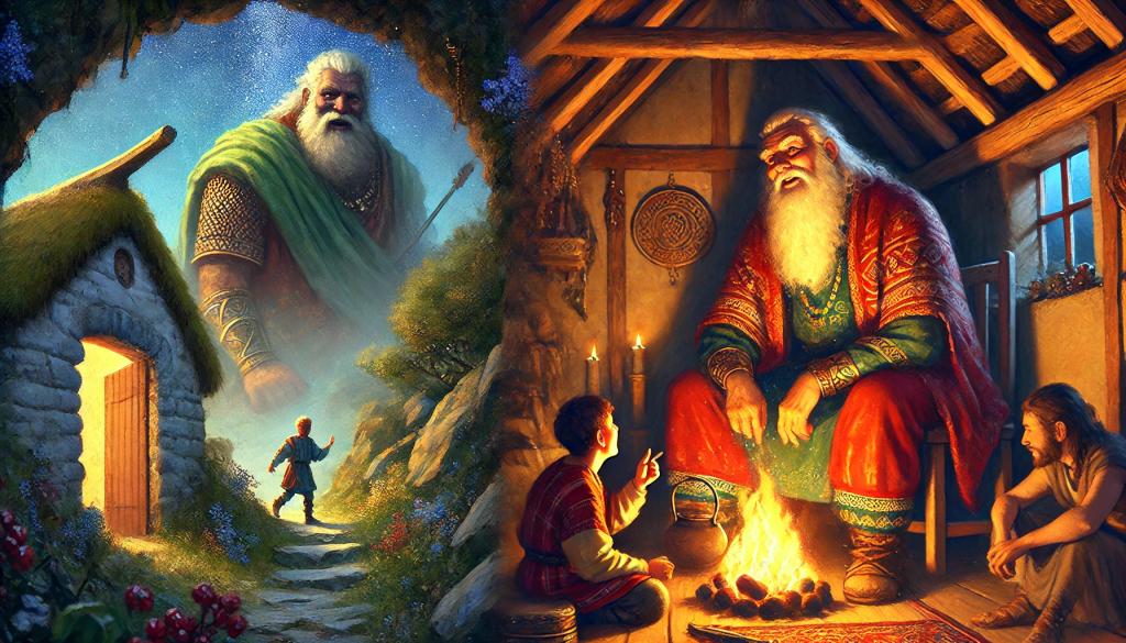 This close-up highlights the humor, tension, and supernatural trickery that define this legendary Irish myth, emphasizing Fin’s wit and cunning over brute force.
