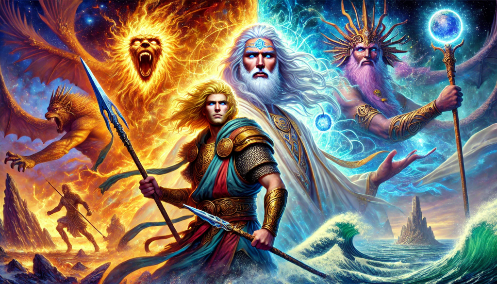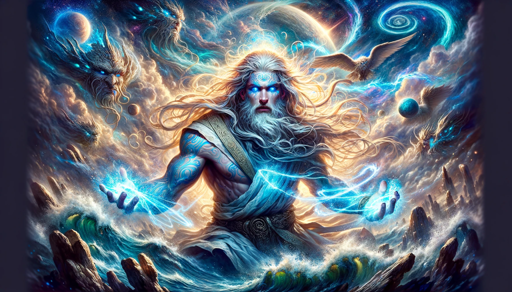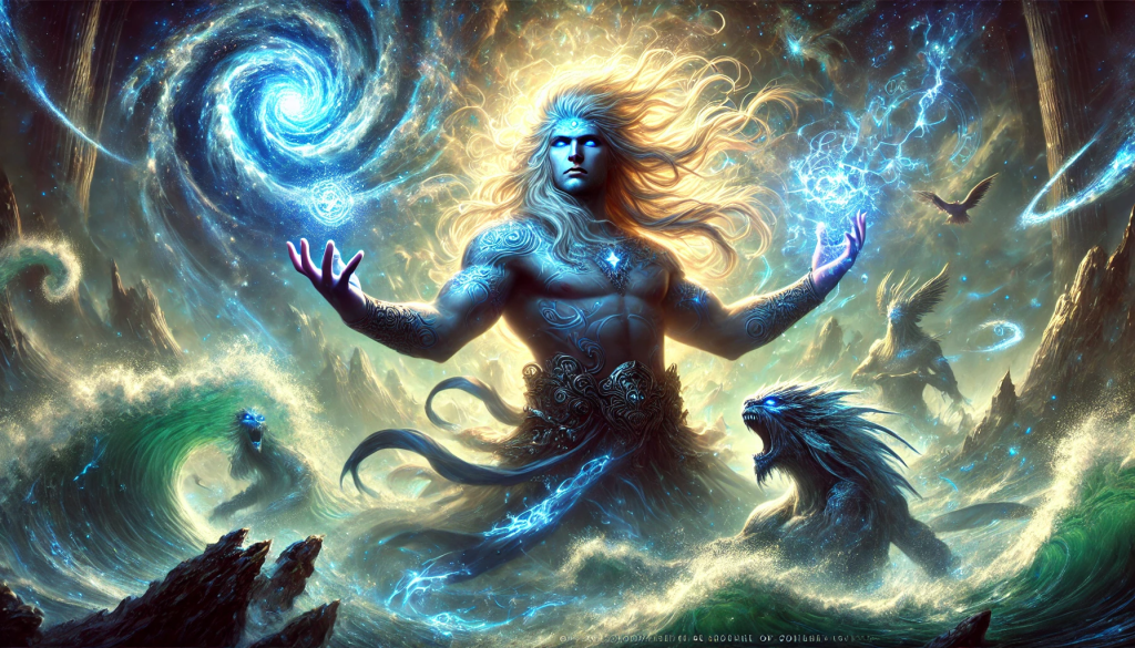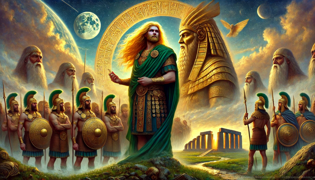 His exploits include battling giants, leading the Fianna warriors, and shaping landscapes with his immense power. His tales merge history, myth, and supernatural elements, making him a powerful emanation of Enki as a wise guide and protector.