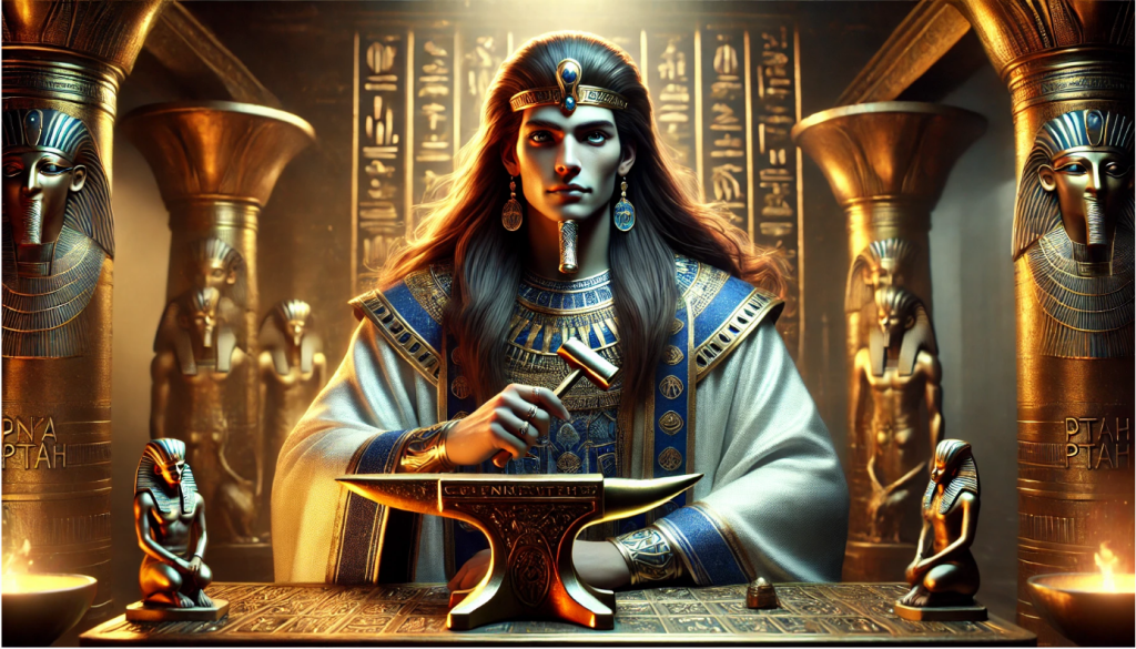 In Egyptian mythology, Ptah was believed to have created the world through thought and speech, an act symbolizing the power of divine intellect and creativity. He was closely connected to artisans and builders, inspiring advancements in architecture and engineering that defined ancient Egypt’s monumental achievements. Ptah’s worship was centered in Memphis, Egypt, where he was venerated as the patron of craftsmen and architects.