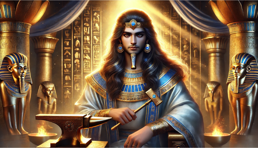 Ptah illustrates his hands-on role as a craftsman and divine architect. Let me know how you feel about this image, and I’ll proceed with the third one!