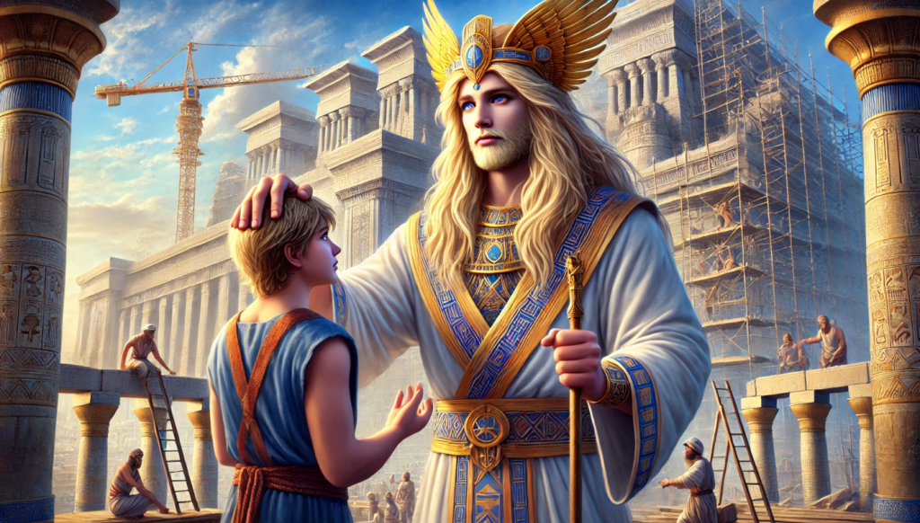 A notable story tells of Ptah guiding the construction of the great temple at Memphis, where he worked alongside his son Imhotep, another legendary architect and healer. Together, they symbolized the unification of divine wisdom and human ingenuity, ensuring the temple became a beacon of balance and spiritual elevation.