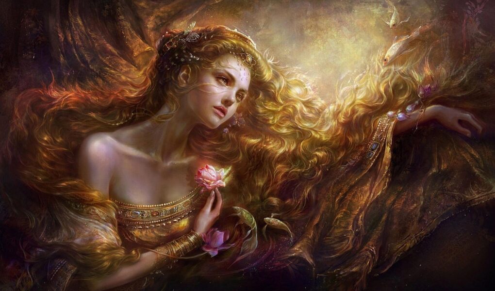 It was at the end of a day he had spent totally absorbed by the mighty task of controlling the water flow to the Middle world that Enki saw Ninsar walking on her own along the marshlands. Indeed, a lovely goddess she had become, and Enki’s eyes fell on the Maiden’s, the Sweet Waters Lord felt a longing he could not yet define. He only knew that after Ninhursag’s departure, no other maiden had touched his heart the way this one did. Indeed, she who walked on her own along the marshlands was the closest version to Ninhursag his eyes had the luck to find. Enki did not lose time and immediately started wooing the young lady, encouraging her to love him wildly by the riverside.