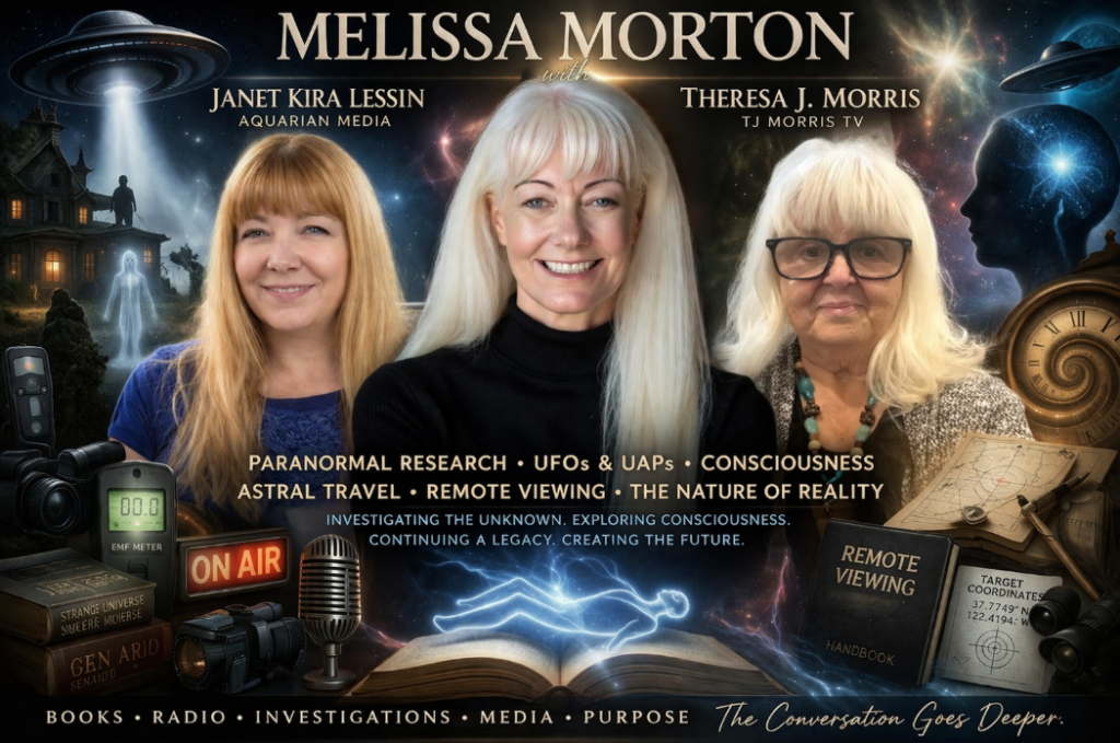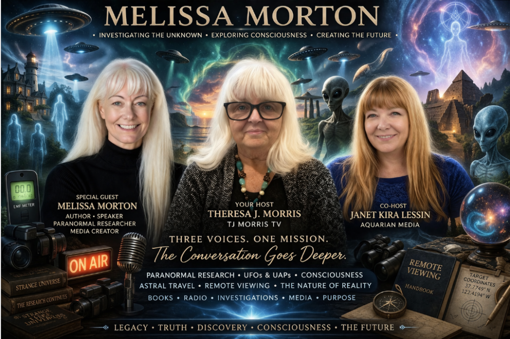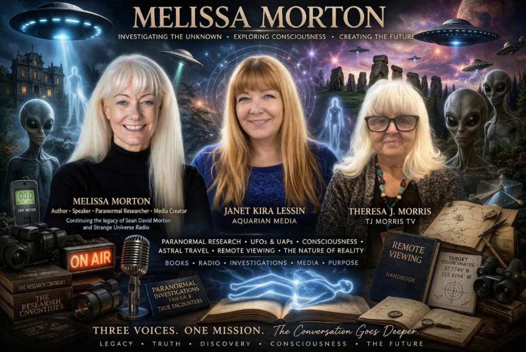UFO disclosure, UAP, extraterrestrial contact, non-human intelligence, paranormal investigation, consciousness, remote viewing, astral travel, out of body experiences, multidimensional reality, ET experiencers, disclosure movement, Aquarian Media, TJ Morris TV, Strange Universe Radio, Melissa Morton, Janet Kira Lessin, Theresa J Morris, Sean David Morton legacy, Mystic Frontier, secret space program, spiritual awakening, cosmic origins, Anunnaki, ancient aliens, human potential, intuitive development, metaphysics, life after death, reincarnation, time and consciousness, government disclosure, UFO research, paranormal media, experiencer stories, alternative history, galactic awareness, higher consciousness, awakening humanity, truth seekers