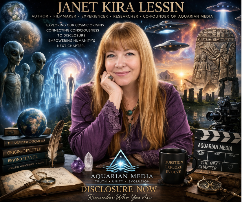 Janet Kira Lessin is an author, filmmaker, experiencer, and co-founder of Aquarian Media. A lifelong extraterrestrial contactee and researcher, she explores humanity’s connection to non-human intelligence, consciousness, and our ancient origins. Janet is known for her work on disclosure, her collaborations with Dr. Sasha Alex Lessin, and her role in producing media that bridges science, spirituality, and humanity’s emerging understanding of its place in the cosmos.