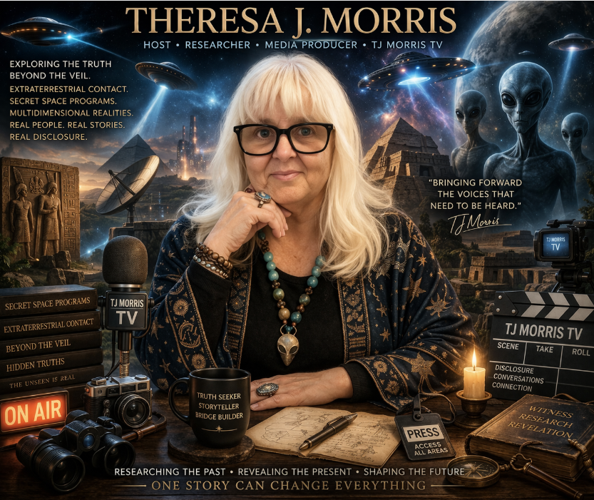 Theresa J. Morris is a media producer, researcher, and host of TJ Morris TV. With a background connected to military and investigative work, she explores extraterrestrial contact, secret space programs, and multidimensional realities. Theresa is known for her candid interviews and her commitment to bringing forward experiencers, researchers, and emerging voices in the disclosure movement.