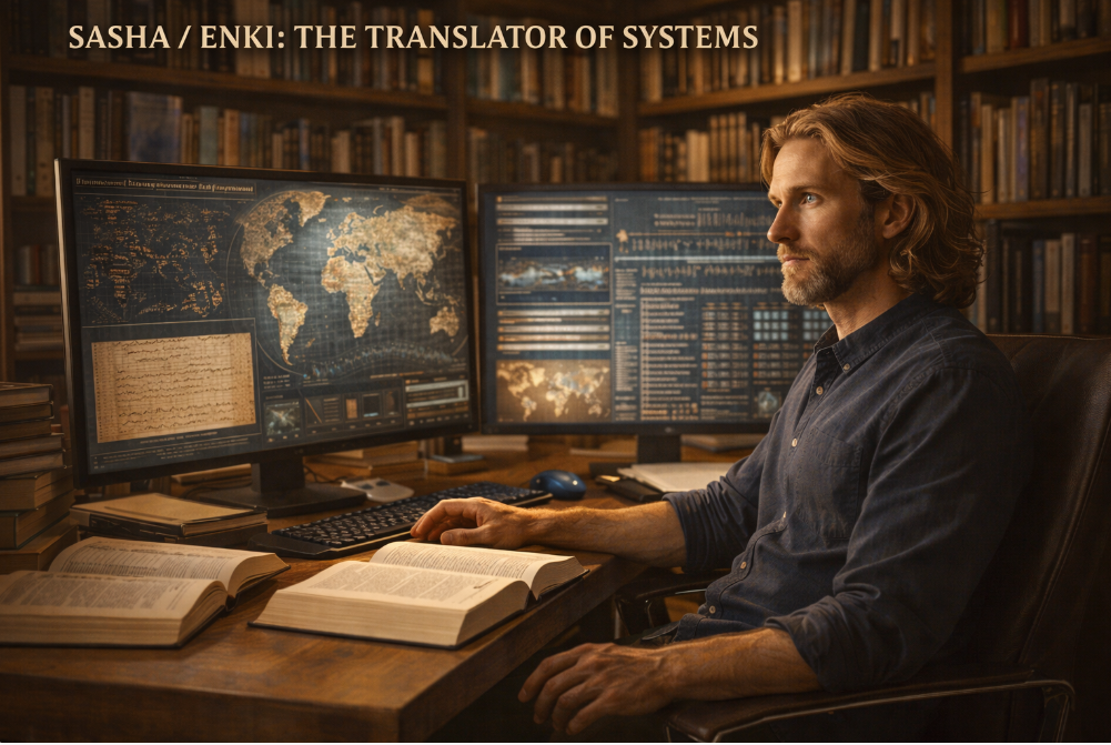 In SASHA / ENKI: THE TRANSLATOR OF SYSTEMS, we examine the modern expression of ethnology as real-time synthesis: integrating ancient records, comparative cultural frameworks, and global digital access to understand how domination and partnership systems emerge, persist, and evolve.