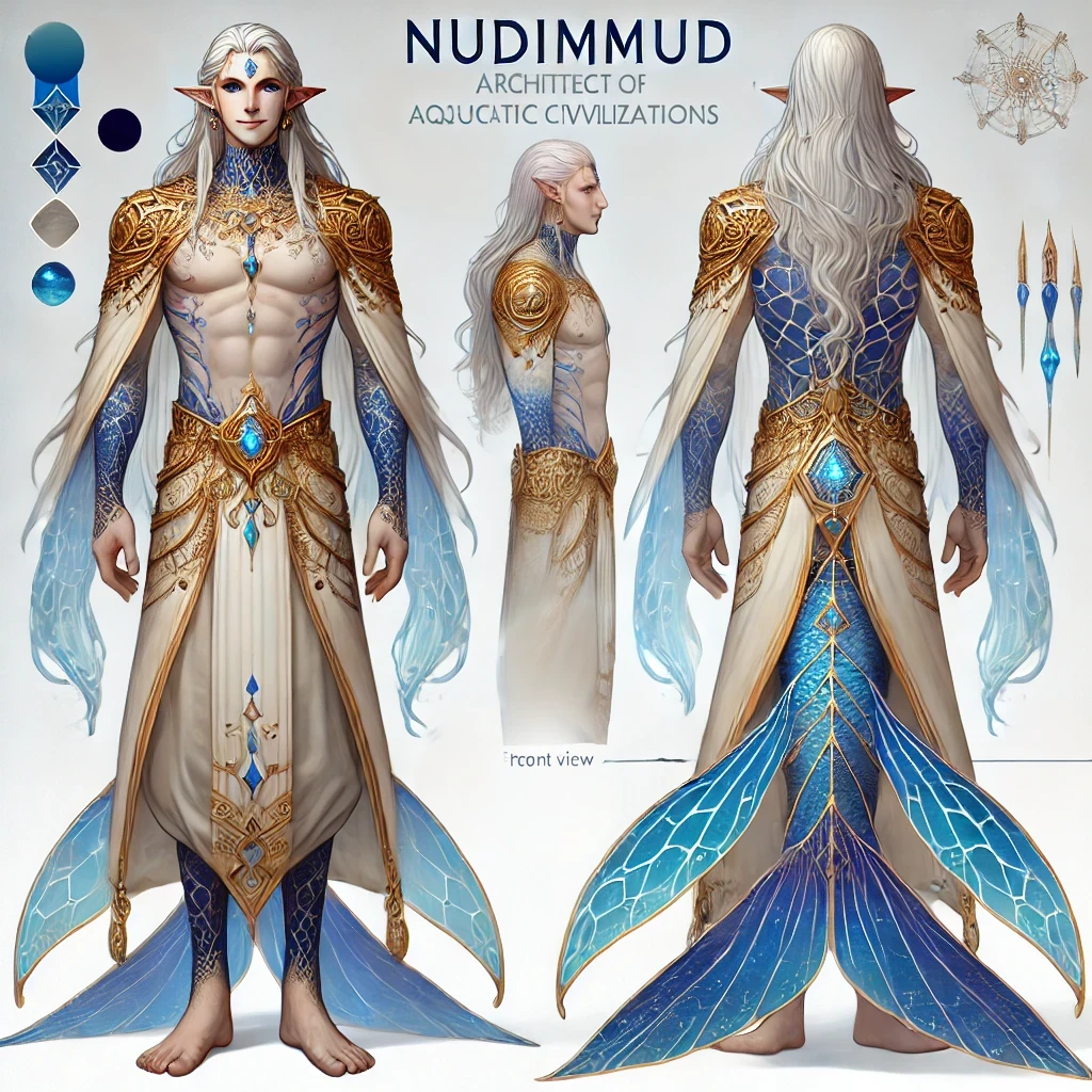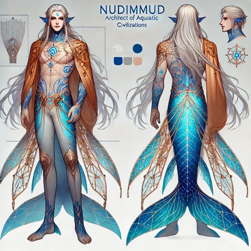 He was born within the vaulted spirals of Apsul-Ra, a submerged crystalline forge-temple that translates geometry into matter through sound. Gifted from birth with resonant sight, Nudimmud perceives harmonic structure in all things — architecture, ecosystems, even language. His mind maps not just materials but intent. Every curve in his design holds purpose, echoing across timelines.