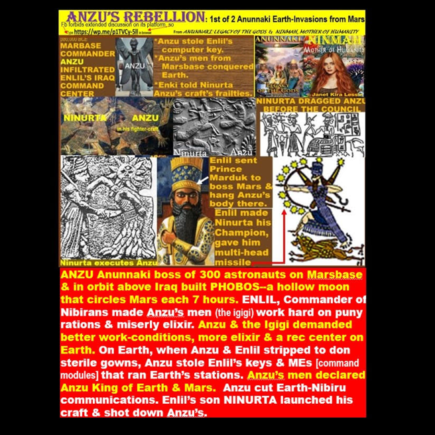 ANZU & ANUNNAKI MARTIANS WON EARTH A WHILE IN 380,000 BCE Click https://wp.me/p1TVCy-5ns for more of the story. anzu-anunnaki-martians-won-earth-a-while-in-380000-bceNibiran Astronauts from Mars-base Beat Anunnaki Forces in Lebanon From “MARDUK, ANUNNAKI KING OF EARTH by Sasha Alex Lessin, Ph.D. (Anthropology) & Janet Kira Lessin (CEO, Aquarian Media) 8’-12’-tall Homo Sapiens like us—the Anunnaki—mounted a goldmining expedition from the planet Nibiru …