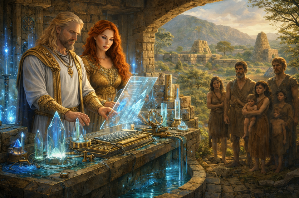 Adapa’s descendants became the first Adapites, a line with a greater infusion of Nibiran genes than the earlier Adamites. Through this genetic inheritance, Enki advanced a population that could manage farms, herds, estates, and administrative systems with far greater skill than previous Earthling workers.
