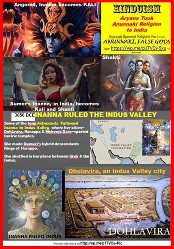 In Pakistan, Aryans lived in Inanna’s Indus Valley fief and bred with the locals. Aryans in India worshipped Enlil as Vishnu, Inanna as Kali and Shakti. When Marduk became a top Sumerian god after 2024 BCE, Aryans kept coming to the Indus Valley and the Indian subcontinent. The Aryan s bred with India’s darker people.