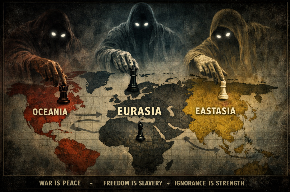 As Orwell noted, the war between these powers is not meant to be won; it is meant to be continuous, keeping populations obedient.