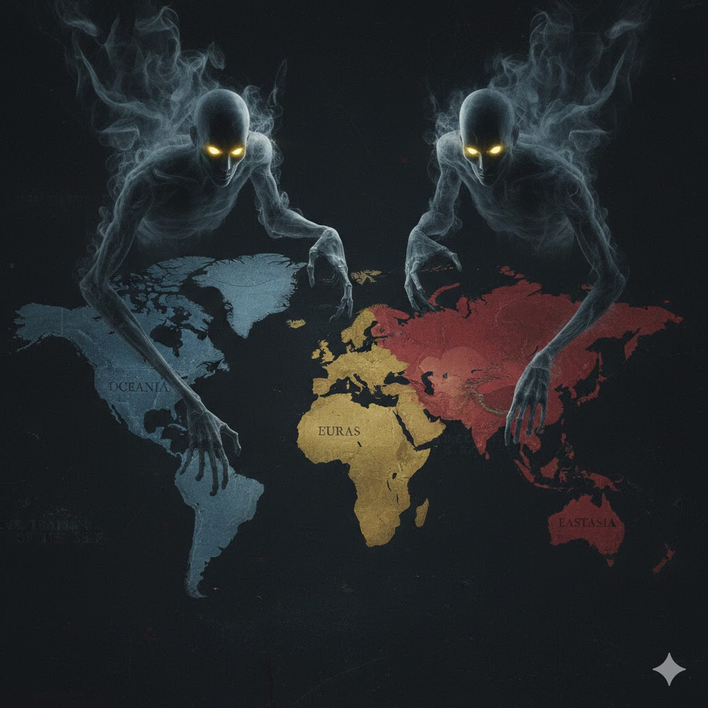 - Eastasia (Xi’s China): A silent observer waiting for the West to exhaust itself in spectacle.