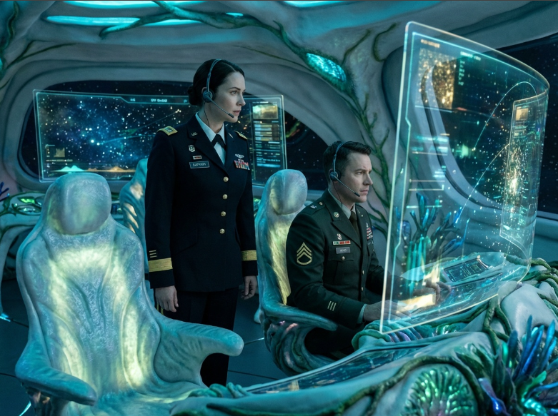 Tom and Sara were now the only beings aboard the alien craft — a vessel not of Earth origin. As they took their seats, the surfaces molded to the contours of their bodies. The interior appeared dull gray to human eyes.