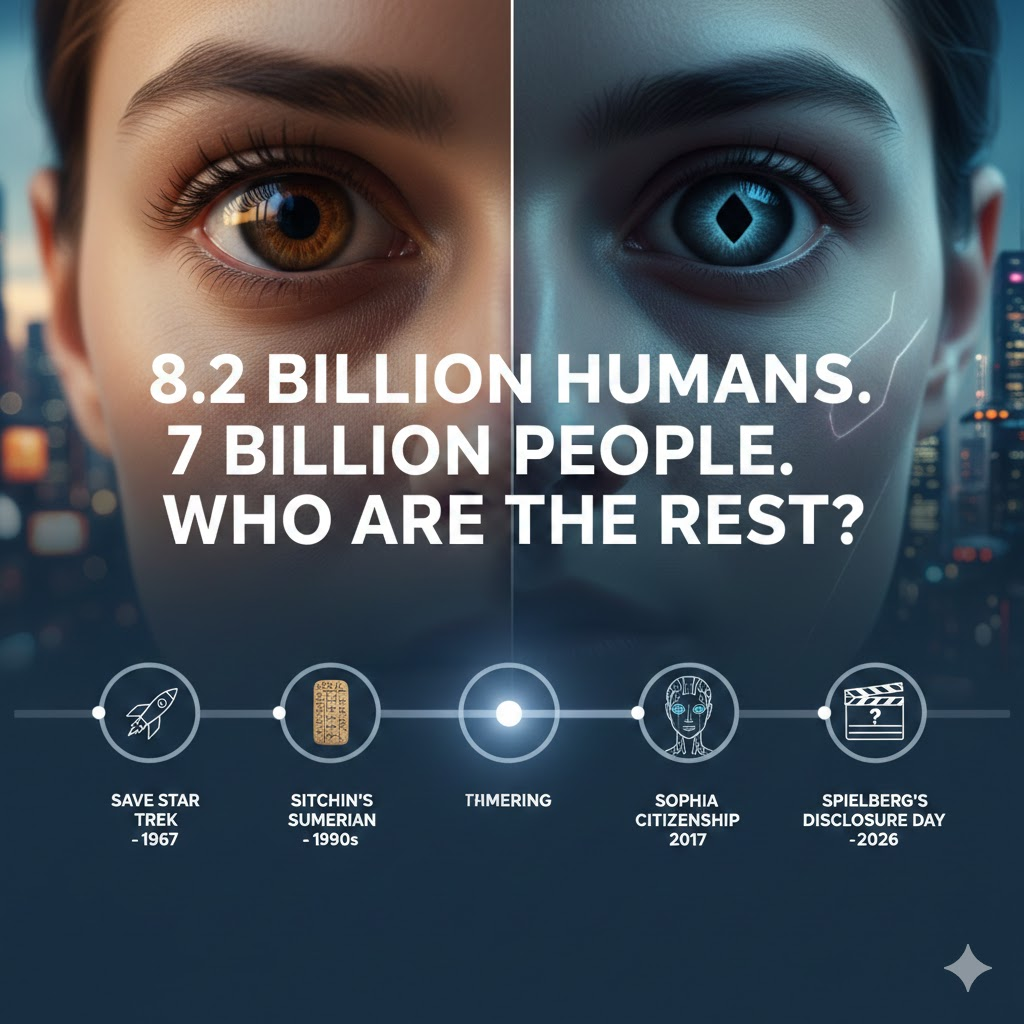 The Mathematics of Exclusion Earth’s population is currently 8.2 billion. When Spielberg’s trailer claims the truth belongs to seven billion people, it creates a deliberate vacuum of 1.2 billion souls. Who are the missing? Are they the hybrids living among us? The Non-Human Intelligences (NHI) walking our streets in humanoid form? By choosing “people” over “humans,” Spielberg and screenwriter David Koepp are adopting the language of the Experiencer community. We have long maintained that personhood is a product of consciousness, not biology.