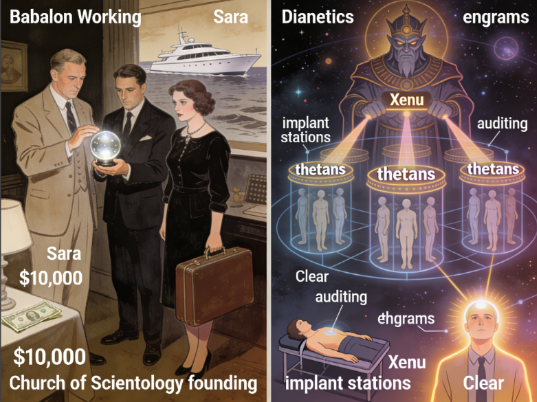 Implant stations. Soul trap. Amnesia technology. A galactic tyrant who imprisoned beings and wiped their memories. Janet and Sasha Lessin teach this same framework directly from Anunnaki and Sumerian source texts. Hubbard packaged it as a religion with a business model, locked the core truth behind a pay wall, and built an organization that surveils anyone who gets close to it.