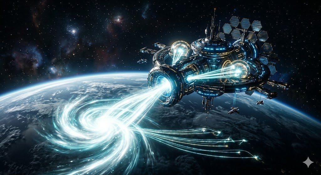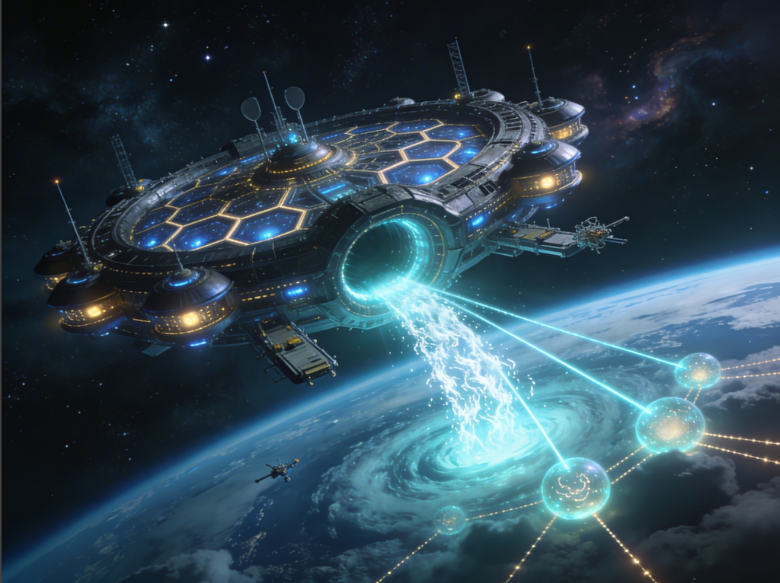 This image conceptualizes the “Soul Trap” landing stations described in both frameworks—Hubbard’s Venus station and the Anunnaki technical grid.