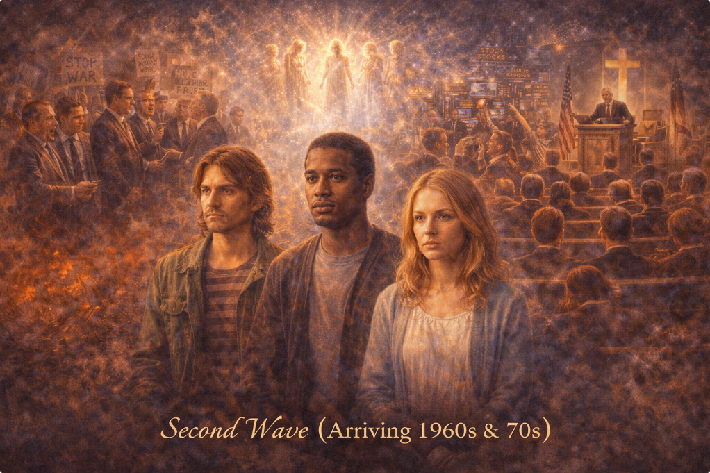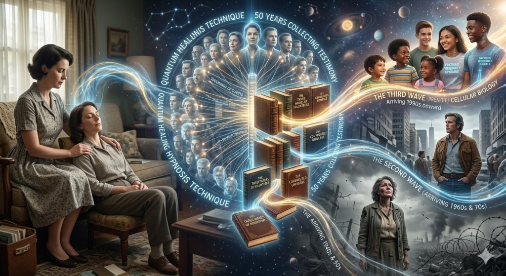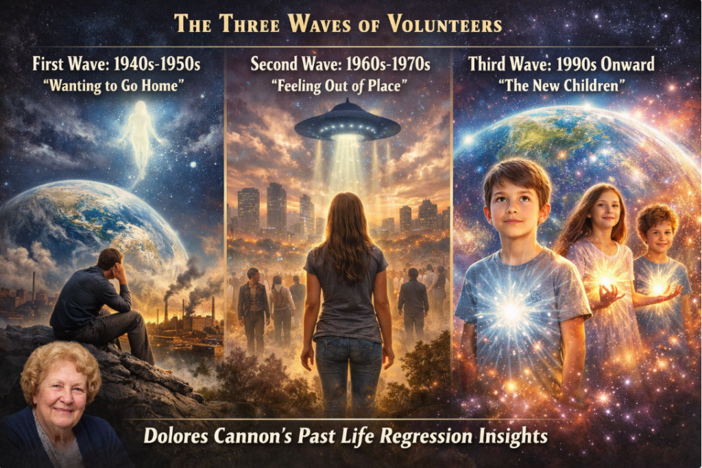 Her clients reported — independently, across decades and continents — testimony consistent enough to constitute a body of evidence. They described souls volunteering to incarnate on Earth specifically for the current transition period in three distinct waves: a first wave arriving in the 1940s and 50s who found Earth so dense and painful they spent much of their lives wanting to leave; a second wave arriving in the 1960s and 70s with more capacity to function but still profound alienation from ordinary human structures; and a third wave arriving from the 1990s onward, children and young adults carrying an encoded frequency upgrade in their cellular biology.