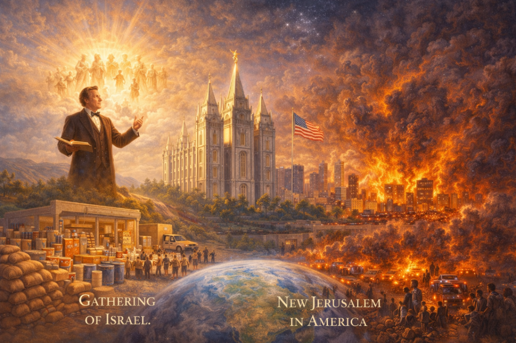 The prophetic tradition Smith inaugurated carries specific content relevant here. He taught that the last days would bring a gathering of Israel, a New Jerusalem built in America, and a tribulation so severe that only the prepared would survive. Mormon theology assigns America a specific cosmic role in end-times geography. The LDS church has stockpiled food, water, and resources for its members against that tribulation for over a century. Its members rank among the most prepared communities on Earth for exactly the collapse scenario this series describes.