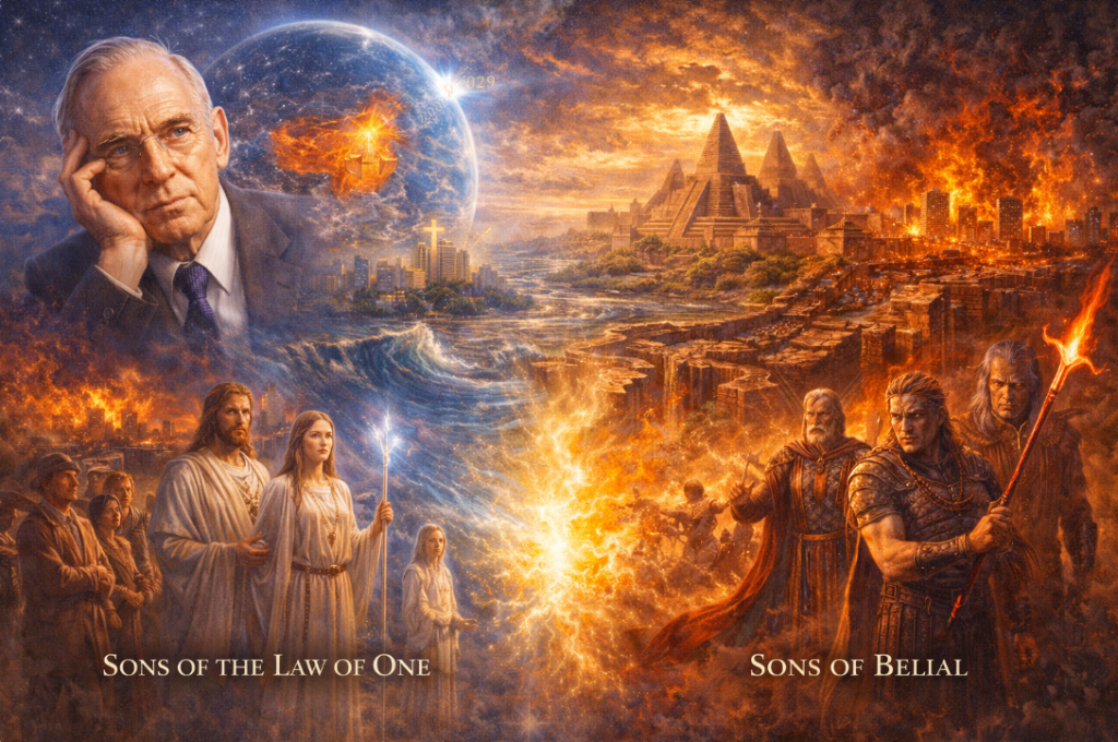 Most relevantly for this series, Cayce described the builders of the ancient civilization whose records he read as having come from elsewhere. He called them the Sons of the Law of One and described their conflict with the Sons of Belial as the foundational opposition in human history — the liberating force against the control structure, encoded in the oldest mythology on Earth and still playing out now.