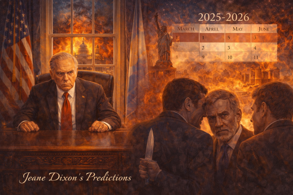 Researchers who studied her full body of work identified prophecies pointing at the 2025–2026 period describing betrayal around a powerful executive figure, challenges from within his own circle of allies, and a dramatic shift in the American political landscape before the end of 2026. She placed the maximum danger point in the first half of the year. March through June. This series was published in March 2026.