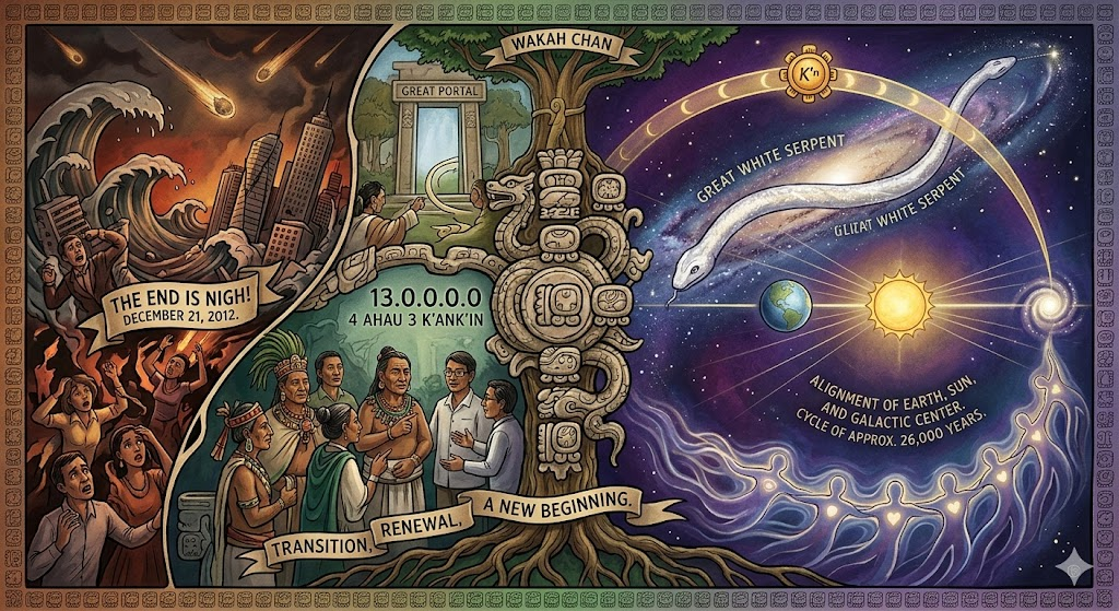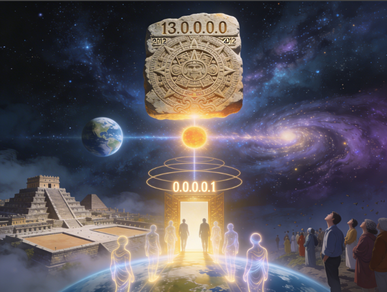 These images illustrate the “End of the Fourth World” and the shift into the “Fifth World” or “New Earth.”