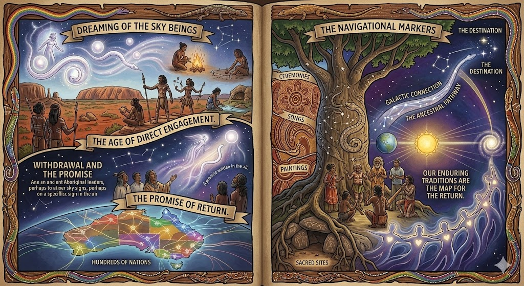 Alice Bailey, who built on Blavatsky’s framework, went further. Her 1948 work The Externalization of the Hierarchy described a coming moment when advanced cosmic beings working behind the scenes would step forward into public visibility — not as religious figures but as teachers, scientists, and leaders. Bailey called this the Externalization and placed it at a specific historical window. That window is now.