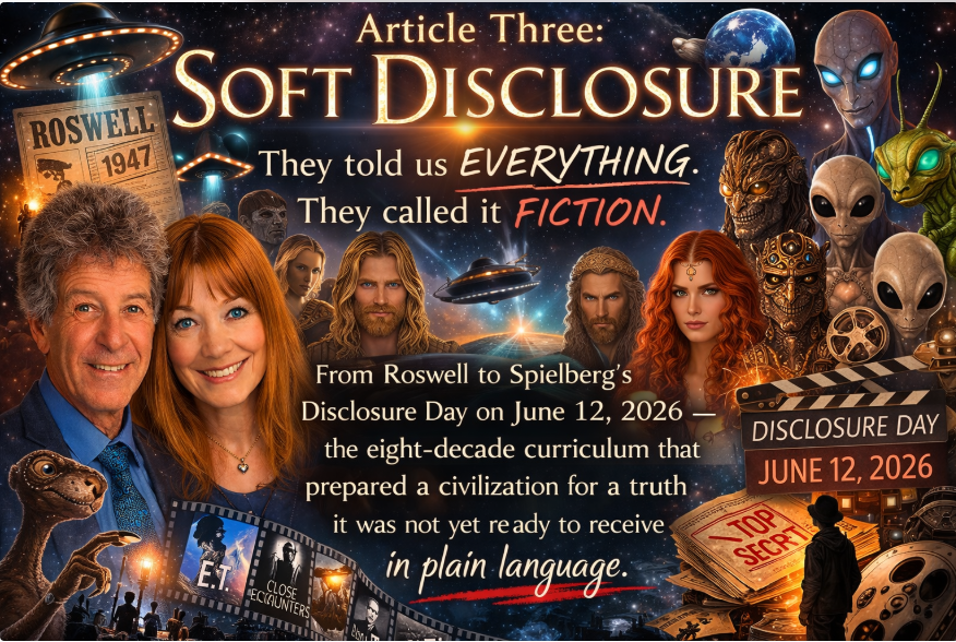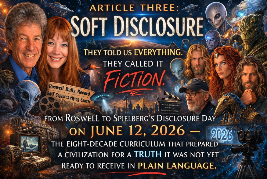 They told us everything. They called it fiction. From Roswell to Spielberg’s Disclosure Day on June 12, 2026 — the eight-decade curriculum that prepared a civilization for a truth it was not yet ready to receive in plain language.