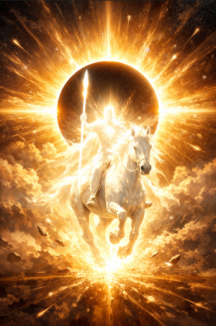 - The Rider of the Convergence: A final, high-impact image of the Rider on the White Horse, but instead of a religious figure, it is depicted as a Being of Pure Light emerging from a solar alignment.