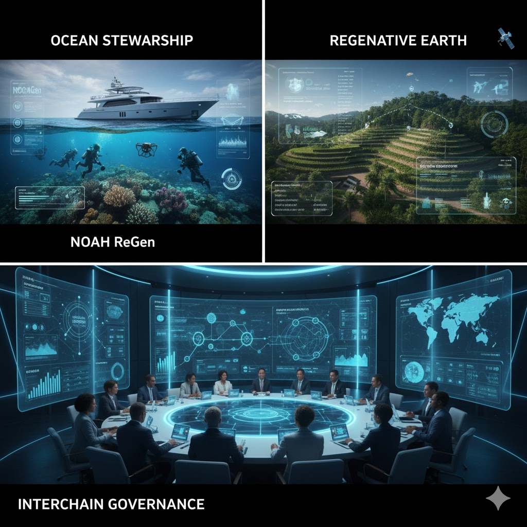 This “Cosmic Origin” narrative transforms ocean conservation. Organizations like NOAH ReGen (Network of Ocean Ambassadors Headquarters) are now framing marine protection as the preservation of “Cosmic Heritage.” The protocol calls for a Regenerative Blue Economy, where success is measured not by extraction, but by biomass recovery and the restoration of “blue carbon” sinks like mangroves and seagrasses.