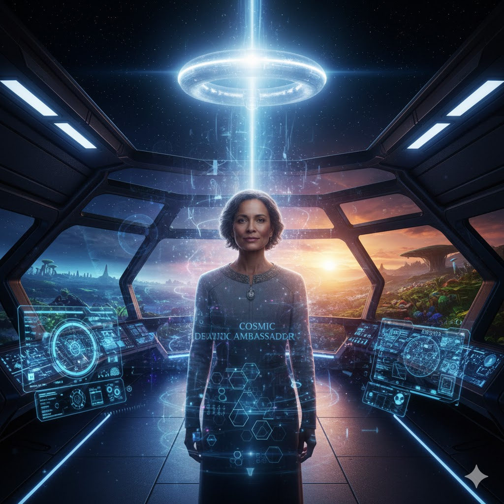 The Cosmic Ambassador is the bridge between the Sky (the cosmic, digital, and spiritual) and the Earth (the physical, biological, and ancestral). They are the “Flag Bearers” for a future where humanity is a conscious, contributing member of a much larger, interconnected universe.