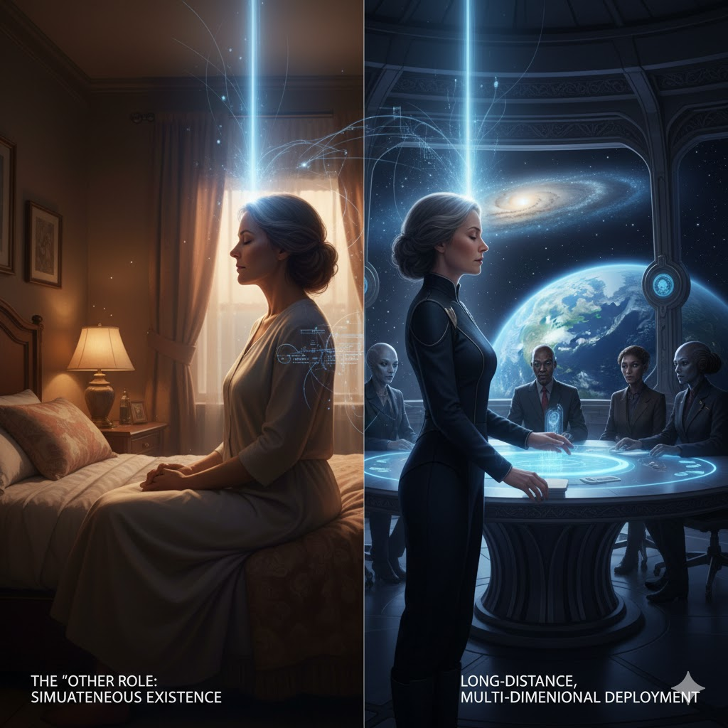 The intriguing concept of an “other role”—beyond the Ambassador’s human life—is best understood through the framework of Simultaneous Existence. In this view, the human living on Earth acts as a physical representative or “outpost” for their higher-dimensional self, who concurrently serves in a primary diplomatic capacity on a ship or council. This explains the deep sense of “cosmic homesickness” many ambassadors report; they are, in essence, experiencing a long-distance, multi-dimensional deployment.