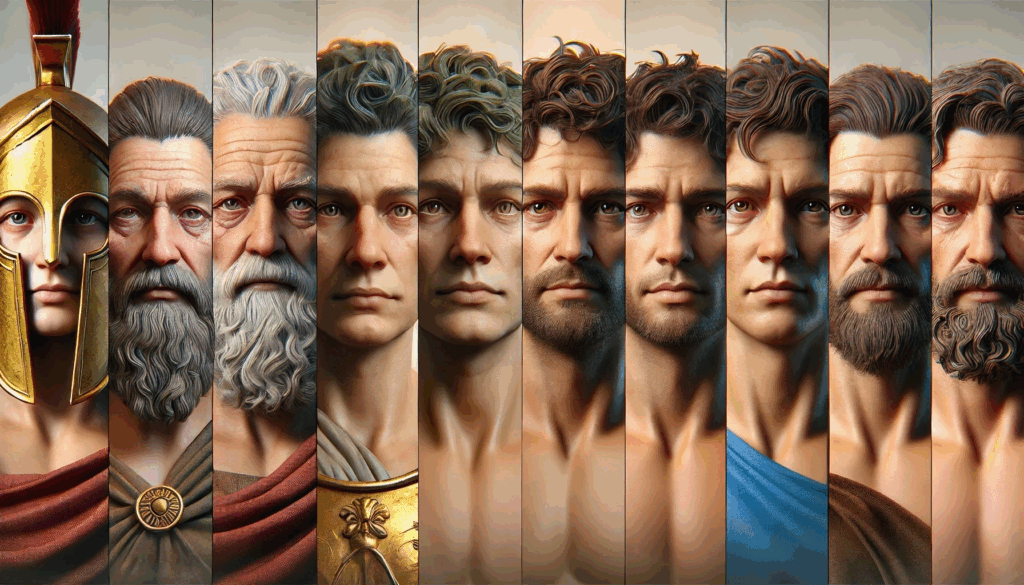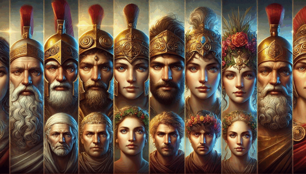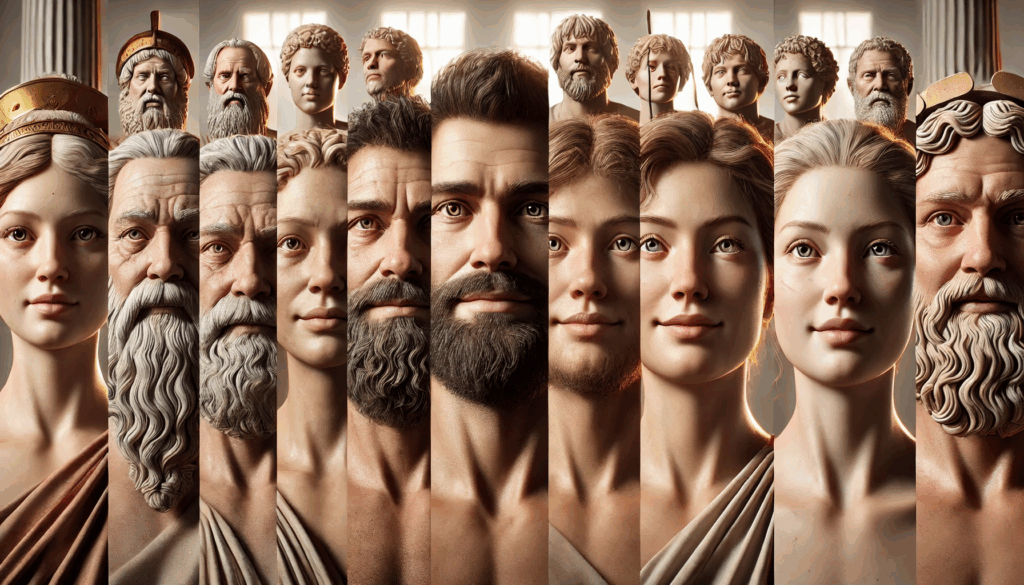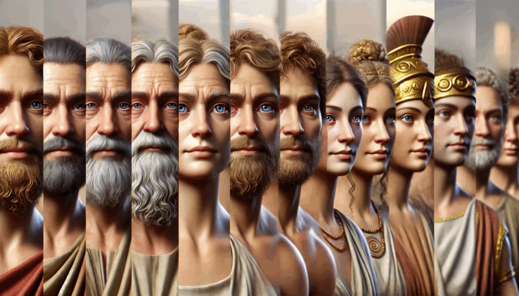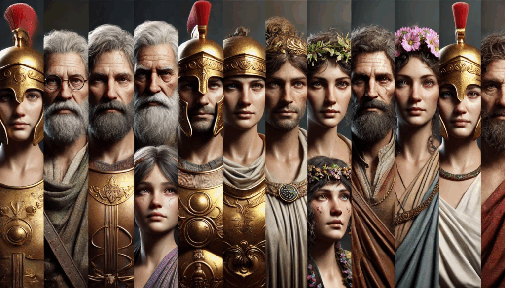 FACES OF ATHENS – REALMS OF MYTH AND POWER In vivid, lifelike detail, the reformers, tyrants, rebels, and divine figures of Athens come to life, captured in a cinematic fantasy vision that unites history and legend.
