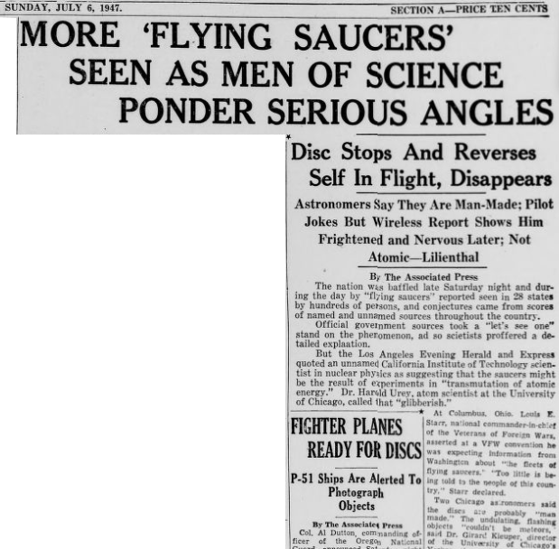 These sightings made front-page headlines in newspapers around the nation. One headline from the Cedar Rapids Gazette read “SAUCERS SWARM OVER CAPITAL”. At the time, USAF Captain Edward J. Ruppelt was the supervisor of the Air Force’s Project Blue Book, tasked with the investigation of UFO sightings. Ruppelt happened to be in Washington at the time, but did not learn about the sightings until Monday, July 21, when he read the headlines in a local newspaper.